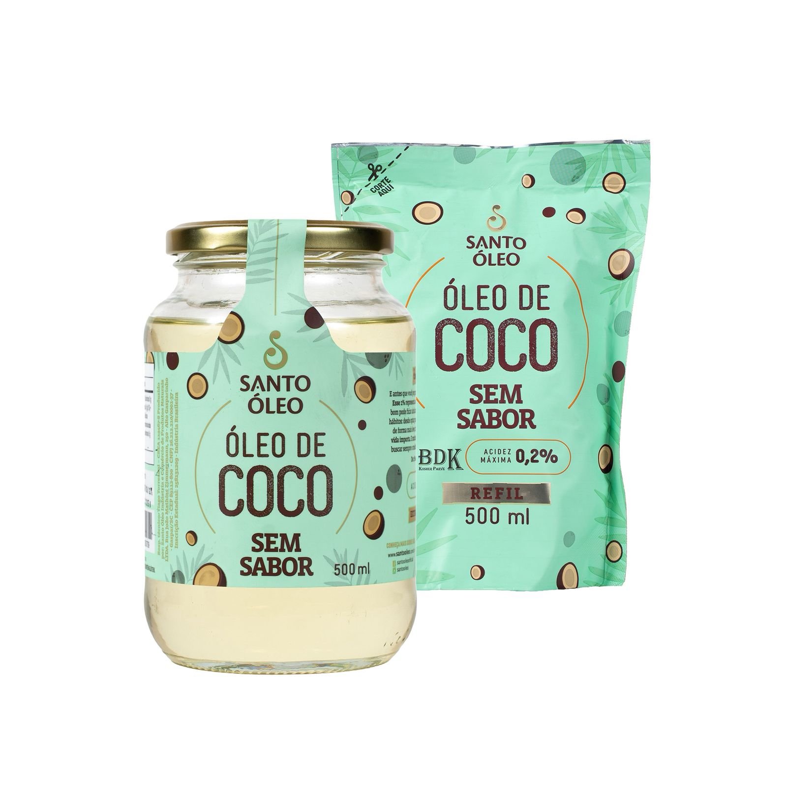 Kit Óleo de Coco 500ml Sem Sabor + Refil 500ml